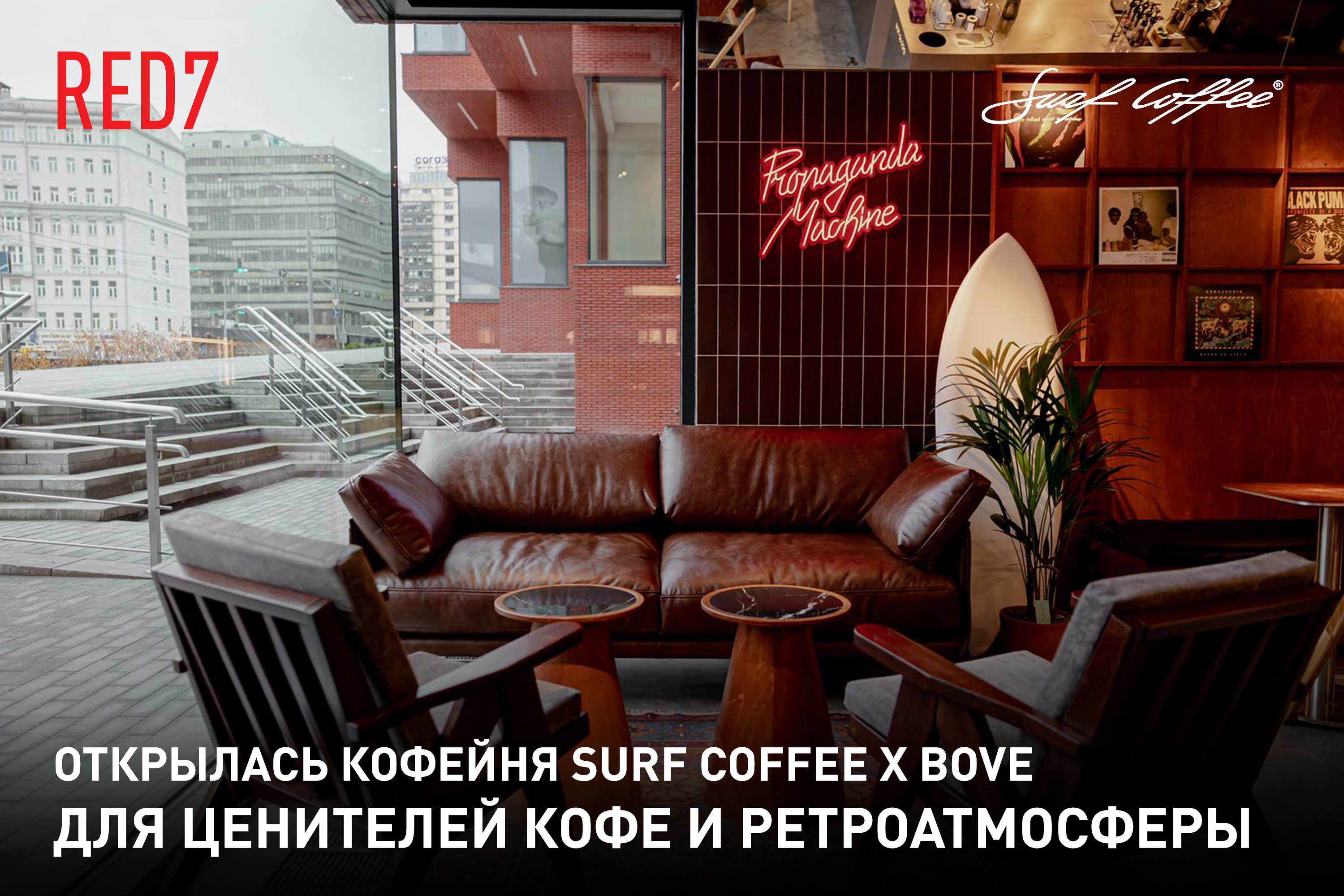 В премиальном комплексе RED7 от ГК «Основа» на Садовом кольце открылась кофейня Surf Coffee x Bove